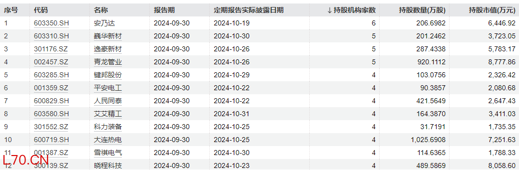 而巍华新材、逸豪新材、青龙管业公布的三季度末前十大流通股东名单显示,均有5家QFII新进入场。大连热电、雷曼光电、香雪制药、利安科技等12家上市公司同期都迎来了4家QFII新股东。