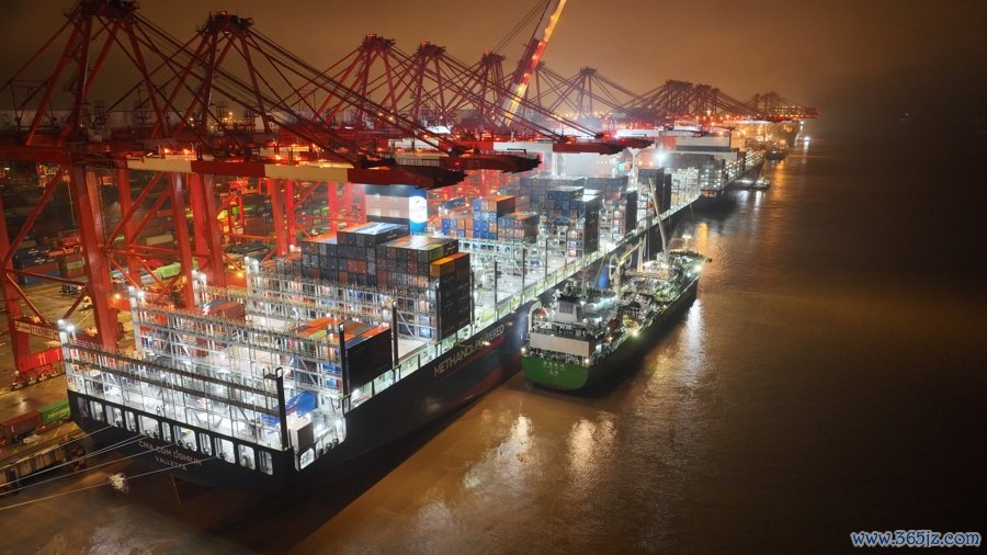 同时,通过边装卸边加注的模式,上海港同步完成集装箱装卸4208自然箱,极大地压缩了船舶在港的非生产性靠泊时间,提升了运营效率。