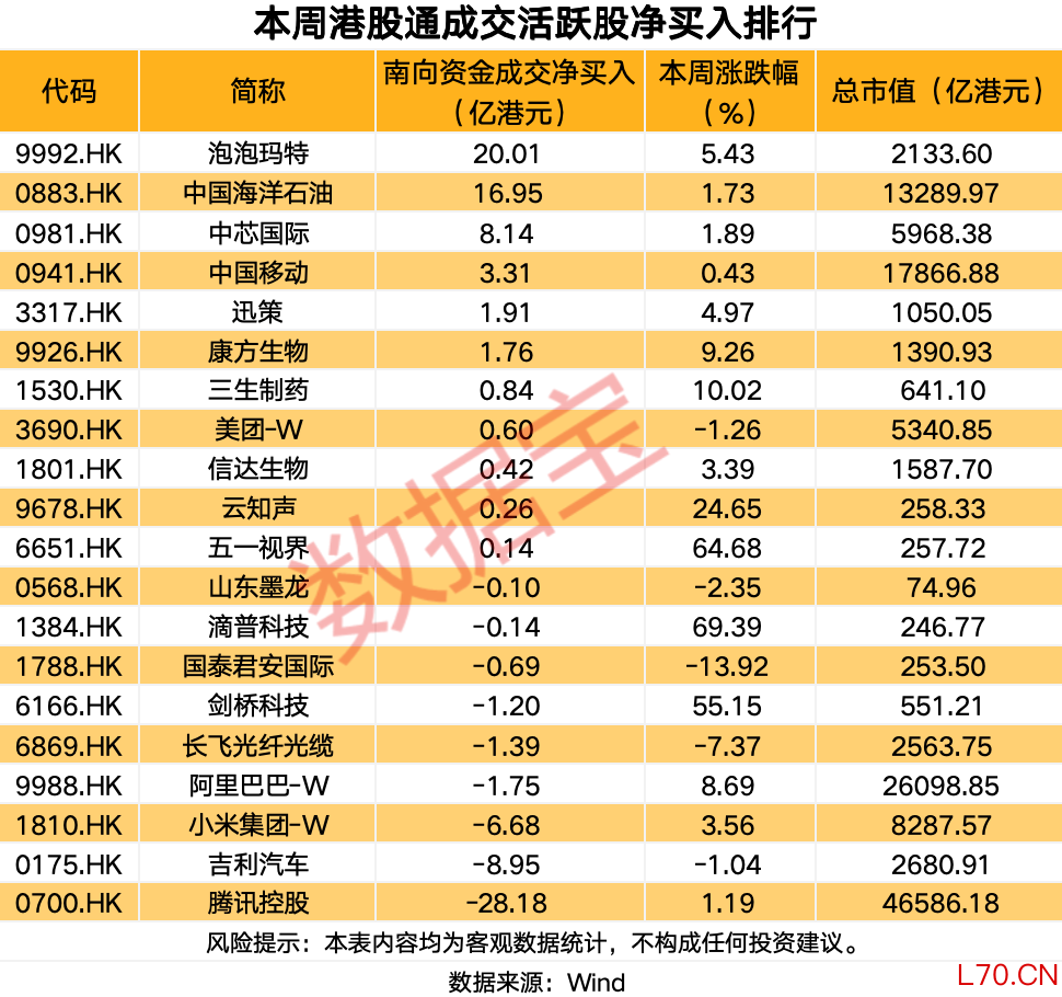 泡泡玛特获南向资金净买入超20亿港元