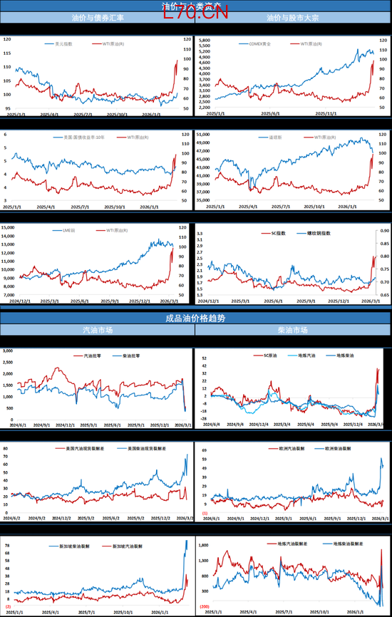 周一市场传出阿联酋、科威特产量均下降超一半,石油运不出对供应端的影响进一步深化。市场关注点放在了霍尔木兹海峡通航进展上,伊朗方面表示在伊朗军方的协调和许可下,已有未卷入战争的船只通过霍尔木兹海峡。一方面美国总统特朗普满世界号召组织起来去中东护航,虽然响应者寥寥,大家都认为战争应该停下来才是当务之急,但也引发了市场关注。而另一方伊朗为了缓解外界呼吁通航压力,明确强调伊朗没有封锁霍尔木兹海峡,只是禁止美国以色列和他们的盟友船只通过。印度是积极与伊朗沟通的一方,继上周两艘油轮成功通过海峡后,印度正试图安排另外六艘油轮通过伊朗,而其他几个国家也在尝试通过非正式渠道与伊朗沟通,以确保其油轮安全通行。这让投资者不得不观察海峡通航情况以进一步评估中东石油供应中断的局面能否得到缓解,油价也暂缓了涨势。