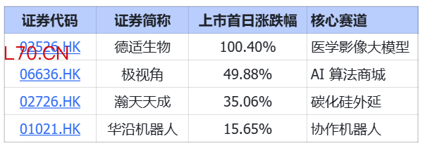 3月30日,港交所锣声四次响起——华沿机器人、德适生物、瀚天天成、极视角五大配资平台,四家企业同步上市。